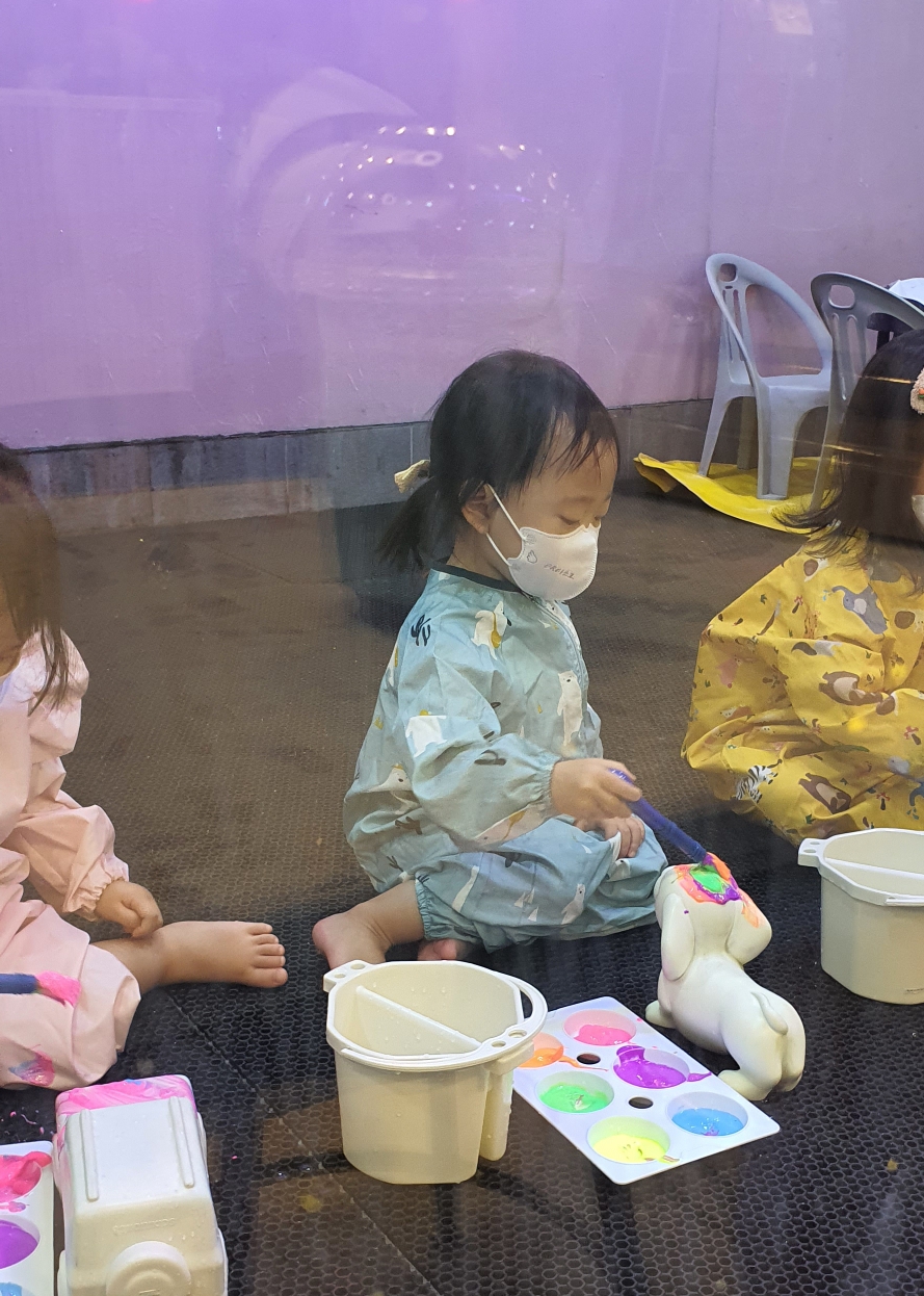 클레이 동물송편 다음 수업은 다른 방으로 옮겨서 물감놀이.