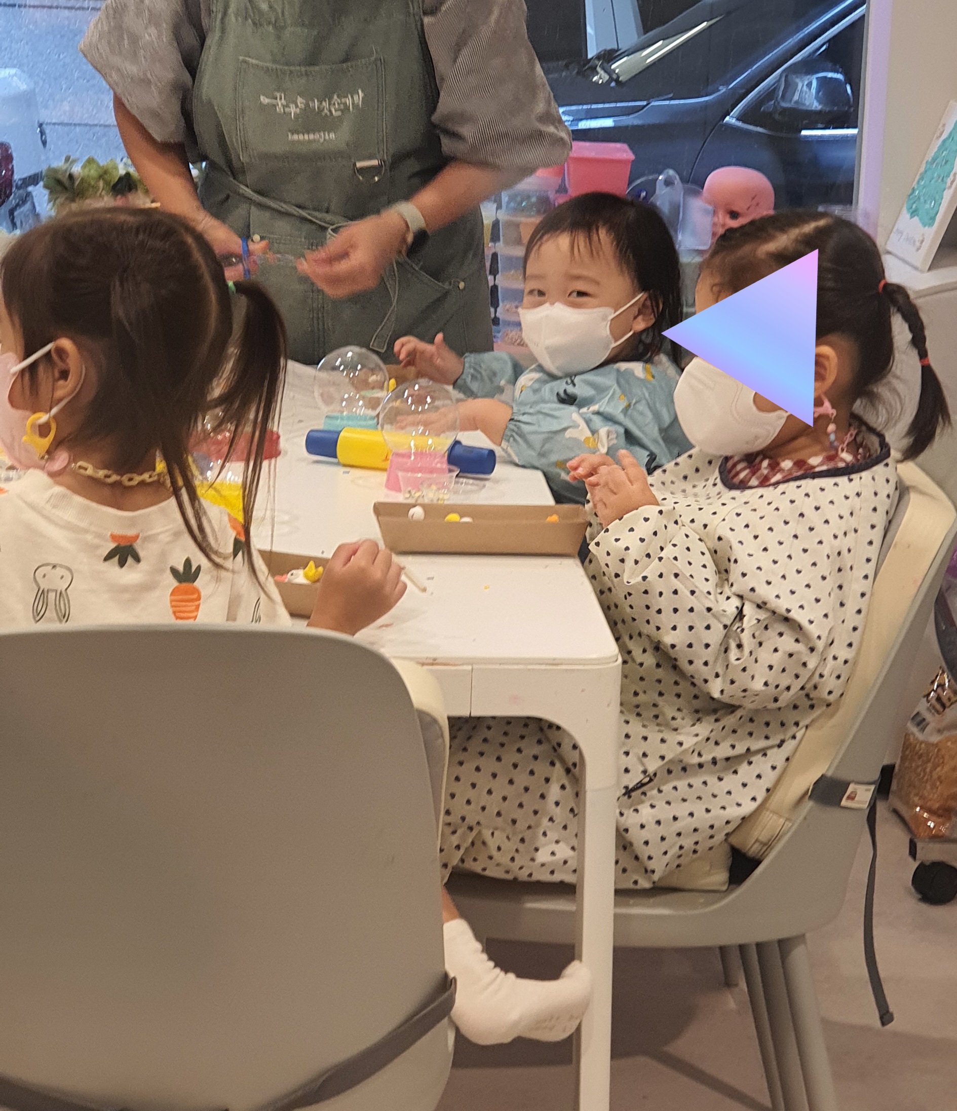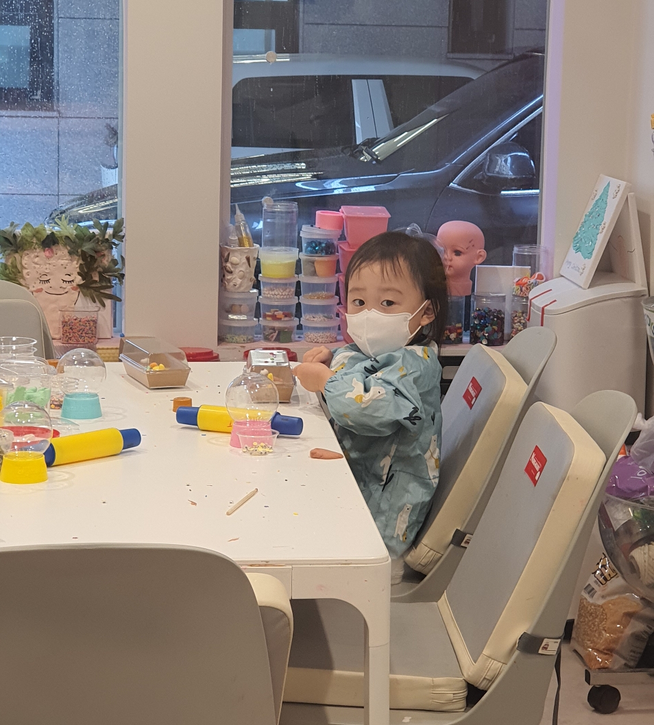 미술체험 키즈카페 '꿈꾸는 다섯 손가락'은 19개월쯤에 방문해보고는 너무 잘 놀아서 자주 와야지 했었는데 갑자기 36개월 연령제한이 생겨서 벼르고 벼르다 드디어 마의 36개월!! 비도 부슬부슬 바깥 산책도 어려우니 친구랑 함께 잽싸게 예약해보았다.